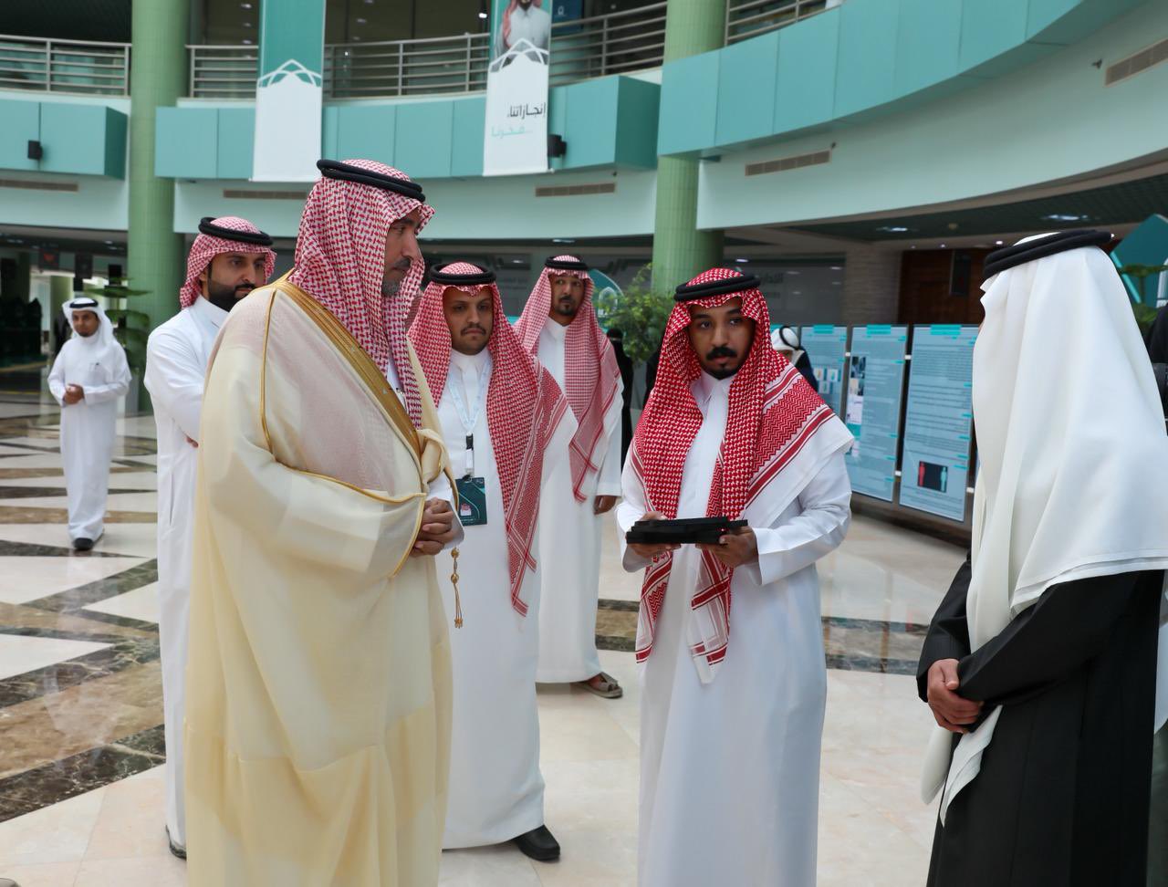 وفور وصول سعادته، تجول في المعرض المصاحب للملتقى، الذي ضم ملصقاتٍ علمية ومشاريع بحثية وابتكارات نوعية للطلاب المشاركين؛ واطلع خلال الجولة على أركان المعرض التي توزعت على خمسة محاور رئيسية؛ حيث استمع لشرح مفصل من الطلاب والطالبات حول ابتكاراتهم وجهودهم البحثية التي شملت مجالات الأبحاث العلمية، والابتكار، والتنمية المستدامة، والمسؤولية المجتمعية، وتعزيز القيم الإسلامية والهوية الوطنية.