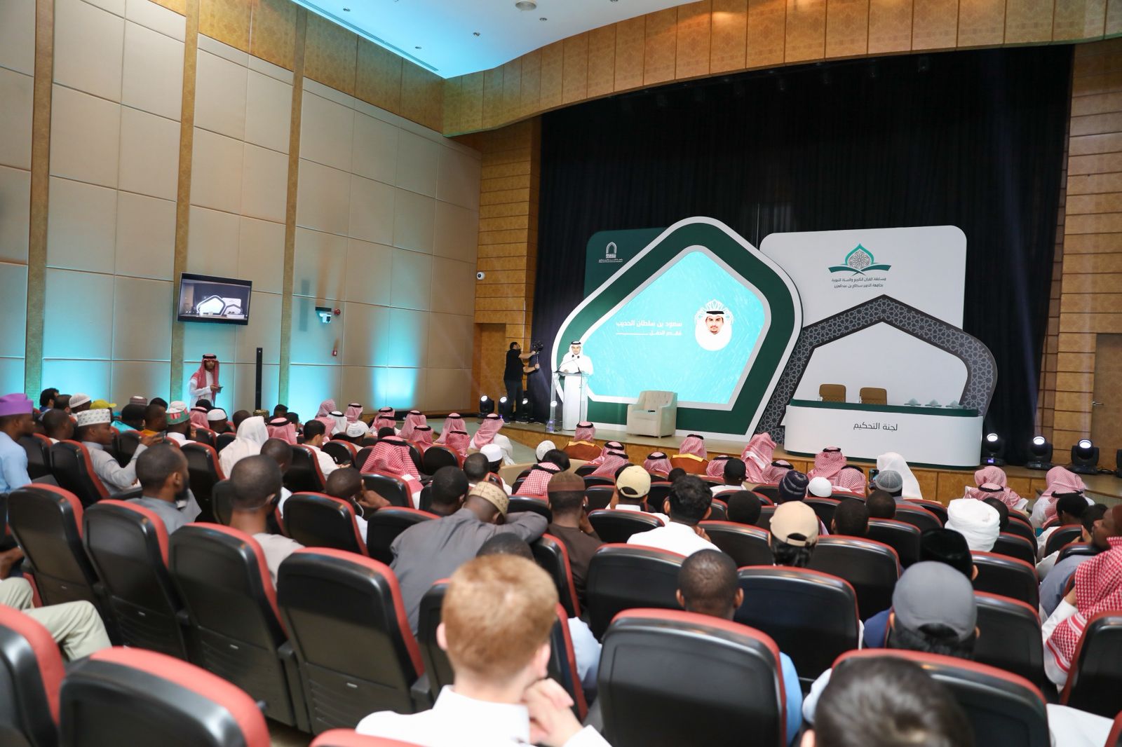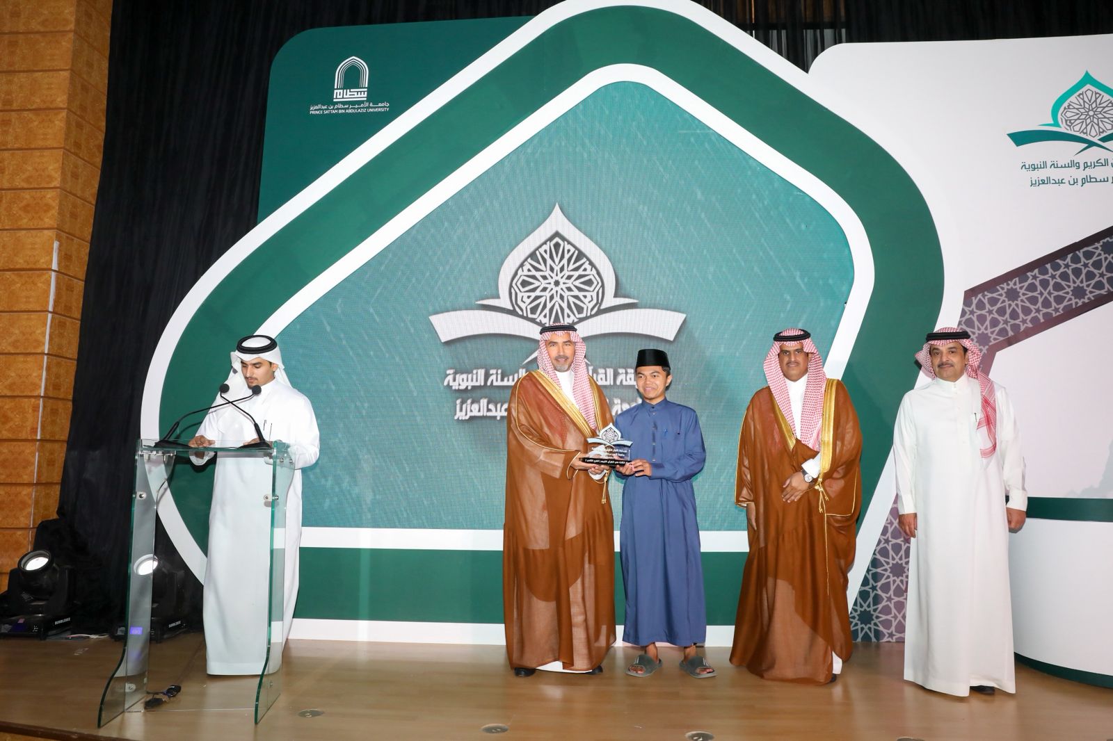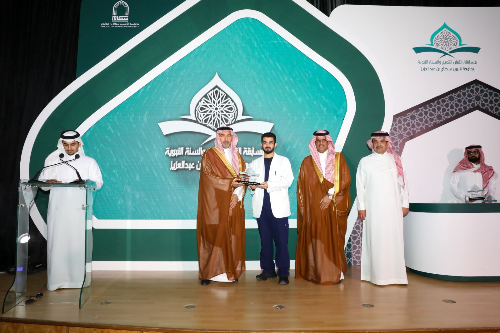 برعاية وحضور سعادة رئيس جامعة الأمير سطام بن عبدالعزيز، الأستاذ الدكتور عبدالله بن عبدالعزيز التميم، اختتمت الجامعة، ممثلةً في عمادة شؤون الطلاب، اليوم الأربعاء، "مسابقة القرآن الكريم والسنة النبوية" في نسختها الخامسة عشرة؛ وذلك على مسرح كلية الهندسة في المدينة الجامعية بالخرج، وبحضور سعادة وكيل الجامعة للشؤون التعليمية والأكاديمية، الأستاذ الدكتور مشاري بن عياد العصيمي، وعدد من قيادات الجامعة ومنسوبيها.